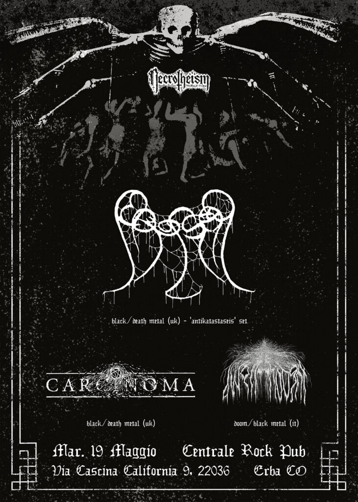 Dopo l’ottimo riscontro della loro prima apparizione italiana nel 2024, Necrotheism Prod. annuncia il ritorno di una delle realtà più elusive e oscure della scena britannica: Abyssal (Profound Lore Records) celebreranno il decennale del loro capolavoro “Antikatastaseis” proponendolo integralmente dal vivo, in occasione di questo appuntamento in esclusiva italiana.