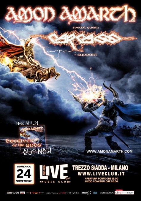 L’accoppiata che non t’aspetti, composta dai viking metaller svedesi Amon Amarth e dai deathster britannici Carcass, farà tappa per l’Italia per un’unica data live fissata per il 24 novembre prossimo al Live Club di Trezzo sull’Adda (MI).