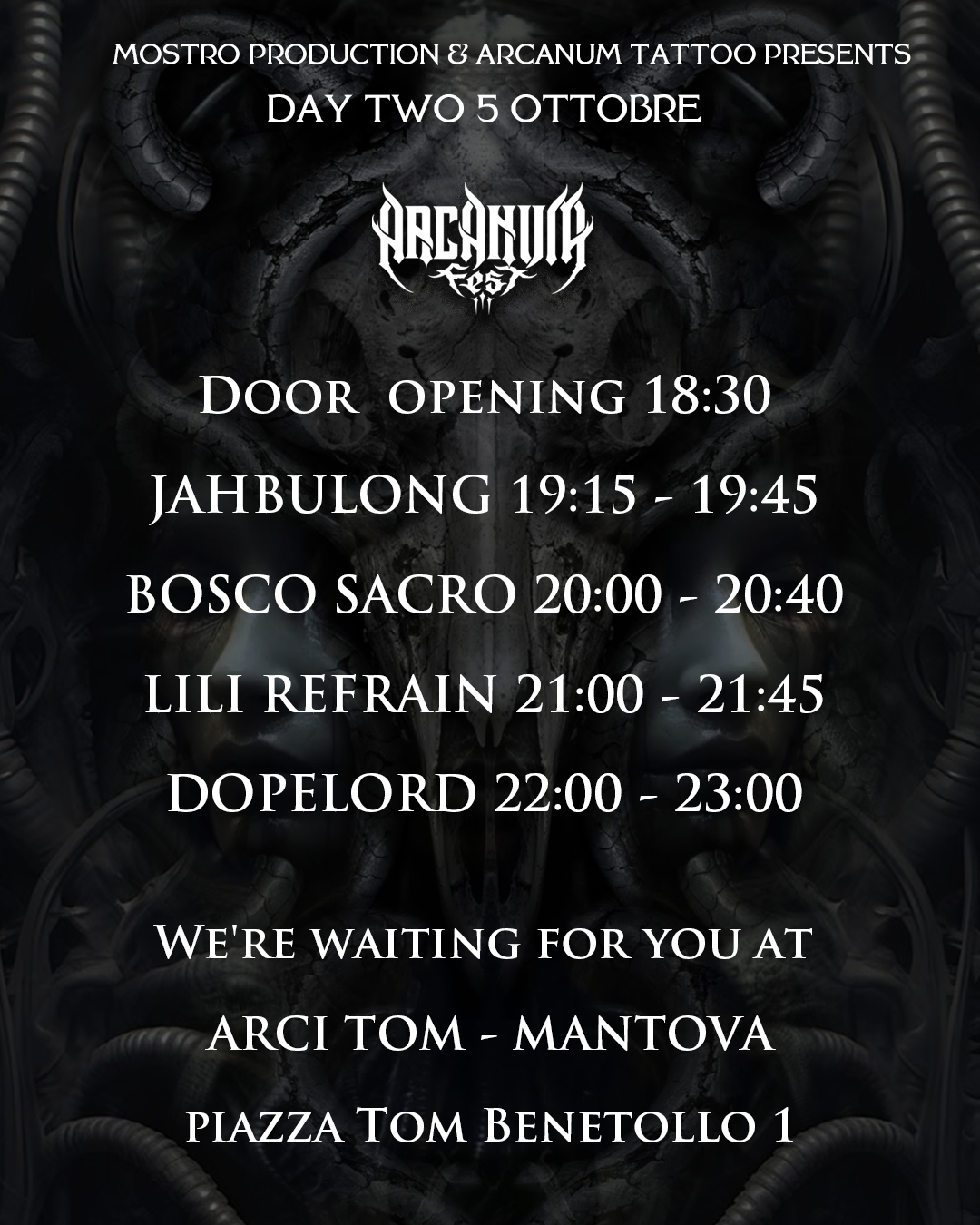 Annunciati ufficialmente gli orari e la setlist delle due giornate dell’Arcanum Fest!