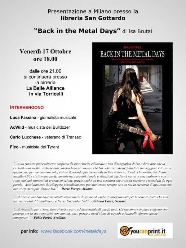 È in uscita il racconto autobiografico di Isabella Fronzoni, in arte Isa Brutal, “Back in the Metal Days”, ambientato nell’Europa degli anni ’80.