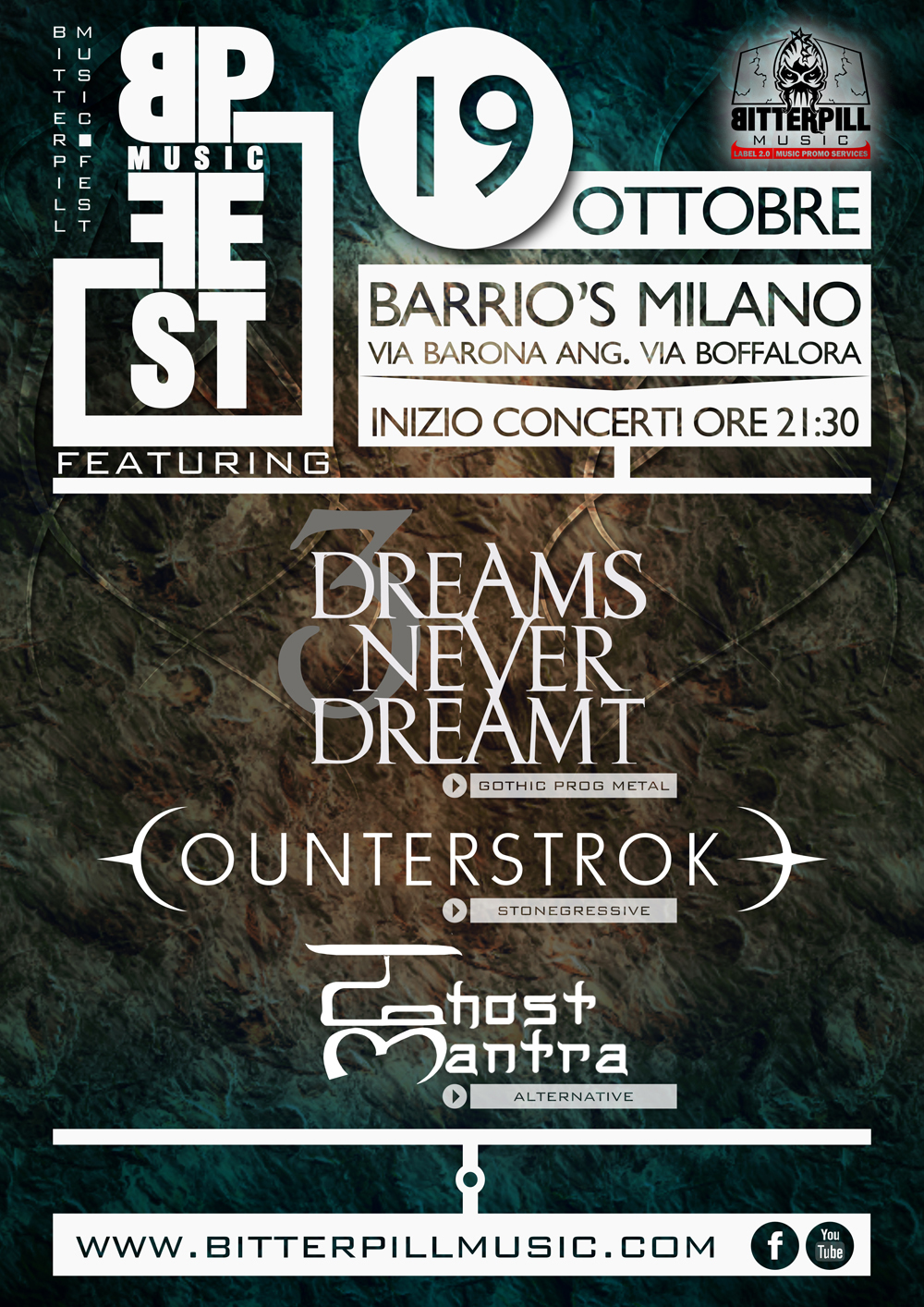 Il 19 Ottobre 2014 Bitterpill Music organizza al Barrio’s di Milano la prima serata targata interamente a suo nome: la BITTERPILL MUSIC FEST.