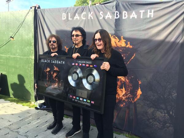 I BLACK SABBATH, nella persona di Tony Iommi, Geezer Butler e Ozzy Osbourne, in occasione del loro concerto di Londra – ad Hyde Park lo scorso venerdì – hanno ricevuto il prestigioso doppio disco di platino per aver venduto oltre un milione di copie di “13”; nuovo album della band di Birmingham uscito lo scorso anno su Vertigo.