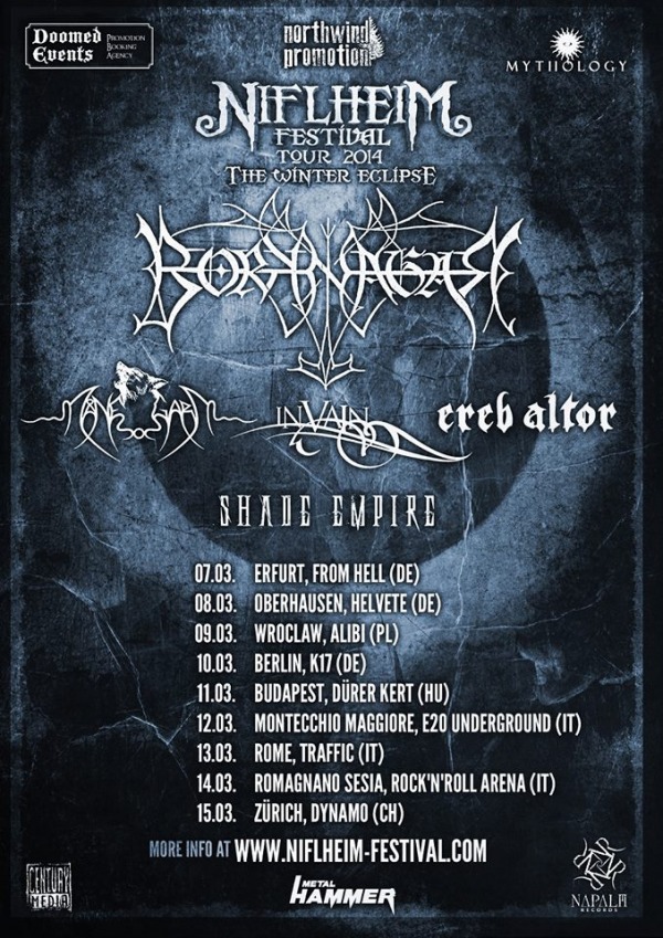Saranno 3 le date italiane di questo tour che vede i Borknagar live in eccellente compagnia: a Montecchio Maggiore mercoledì 12/03/2014 (e20 Underground), Roma giovedì 13/03/2014 (Traffic) e Romagnano Sesia venerdì 14/03/2014 (Rock’n Roll Arena)