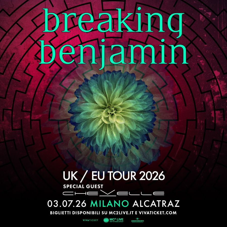 Appuntamento imperdibile per gli appassionati di alternative metal americano: i Breaking Benjamin torneranno in Italia a ben 10 anni di distanza dal precedente concerto. La band guidata da Benjamin Burnley si esibirà dal vivo venerdì 3 luglio 2026 all’Alcatraz di Milano.