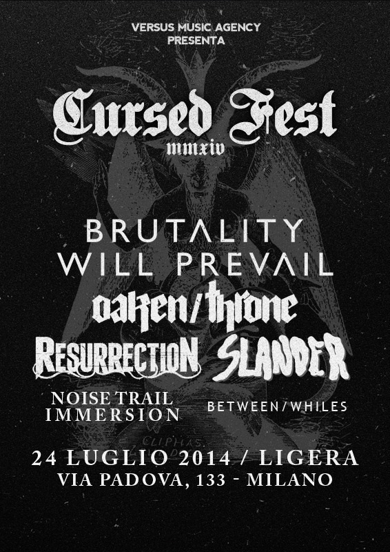 Versus Music Agency è orgogliosa di annunciare che saranno gli inglesiBRUTALITY WILL PREVAIL (Century Media / Seige Of Amida Records) gli headliner della prima edizione del CURSED FEST, nuovo festival undergound dedicato all’hardcore che avrà luogo il 24 Luglio al Ligera di Milano. In loro compagnia ci saranno anche altri ospiti italiani ed internazionali per una serata memorabile. Di seguito tutti i dettagli: