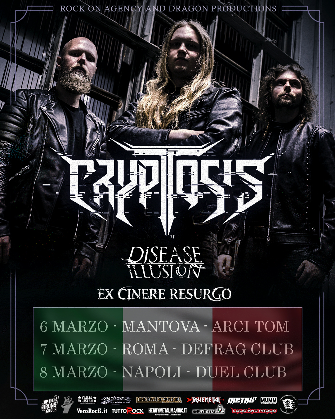 A supporto del tour italiano ci saranno i grandissimi Disease Illusion ed Ex Cinere Resurgo band di indiscusso valore nel panorama Metal Italiano! Nella data di Napoli in apertura i Campani Jumpscare.