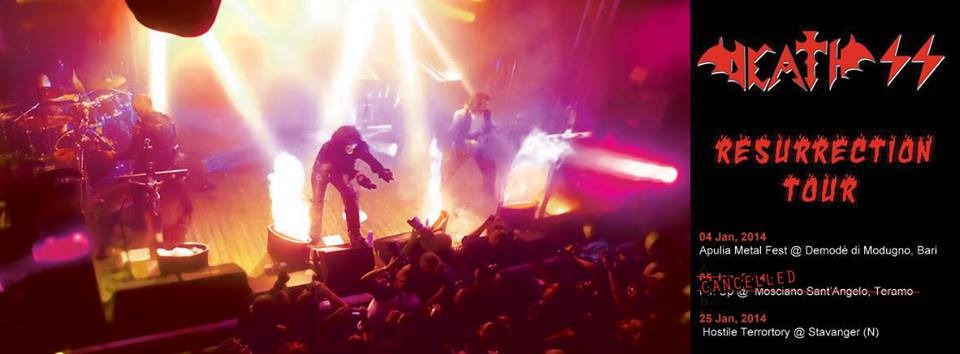 I DEATH SS hanno comunicato, attraverso la loro pagina Facebook, che la data prevista per il prossimo 5 gennaio al Pin Up di Mosciano Sant’Angelo (TE) è stata annullata.