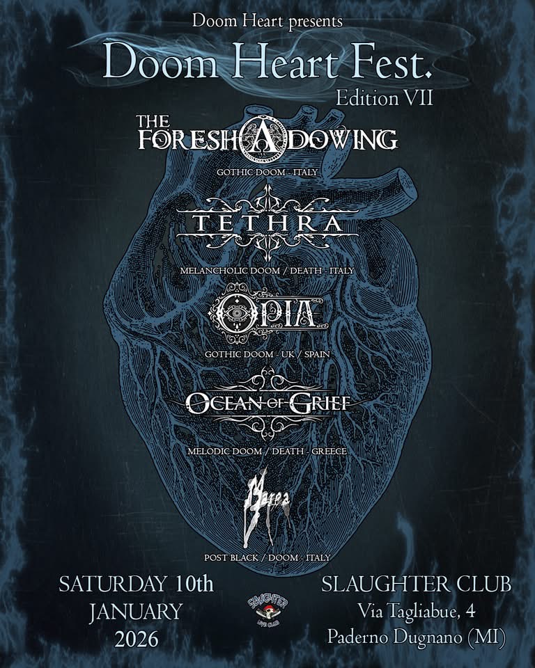 Mancano pochi giorni al ritorno del Doom Heart Fest, che sabato 10 gennaio 2026 celebrerà la sua settima edizione allo Slaughter Club di Paderno Dugnano (MI), confermandosi uno degli appuntamenti più attesi della scena doom e gothic metal.