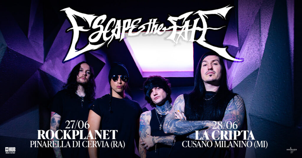 Gli Escape The Fate tornano in Italia dopo due anni per due imperdibili appuntamenti dal vivo nel 2026. La band di Las Vegas, protagonista della scena post-hardcore e alternative metal internazionale da oltre quindici anni, sarà nel nostro Paese per due due date: il 27 giugno al Rockplanet di Pinarella di Cervia (RA) e il 28 giugno a La Cripta di Cusano Milanino (MI).