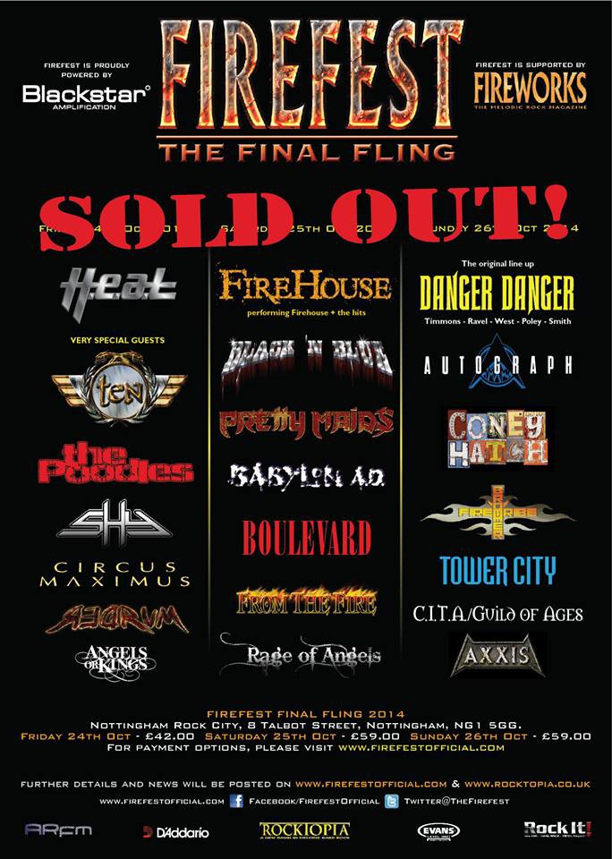 L’organizzazione del festival inglese FIREFEST, che avrà luogo i prossimi 24-25-26 ottobre al Rock City di Nottingham, ha ufficializzato che, a poco più di un mese dall’inizio, l’edizione 2014 è ufficialmente SOLD OUT.