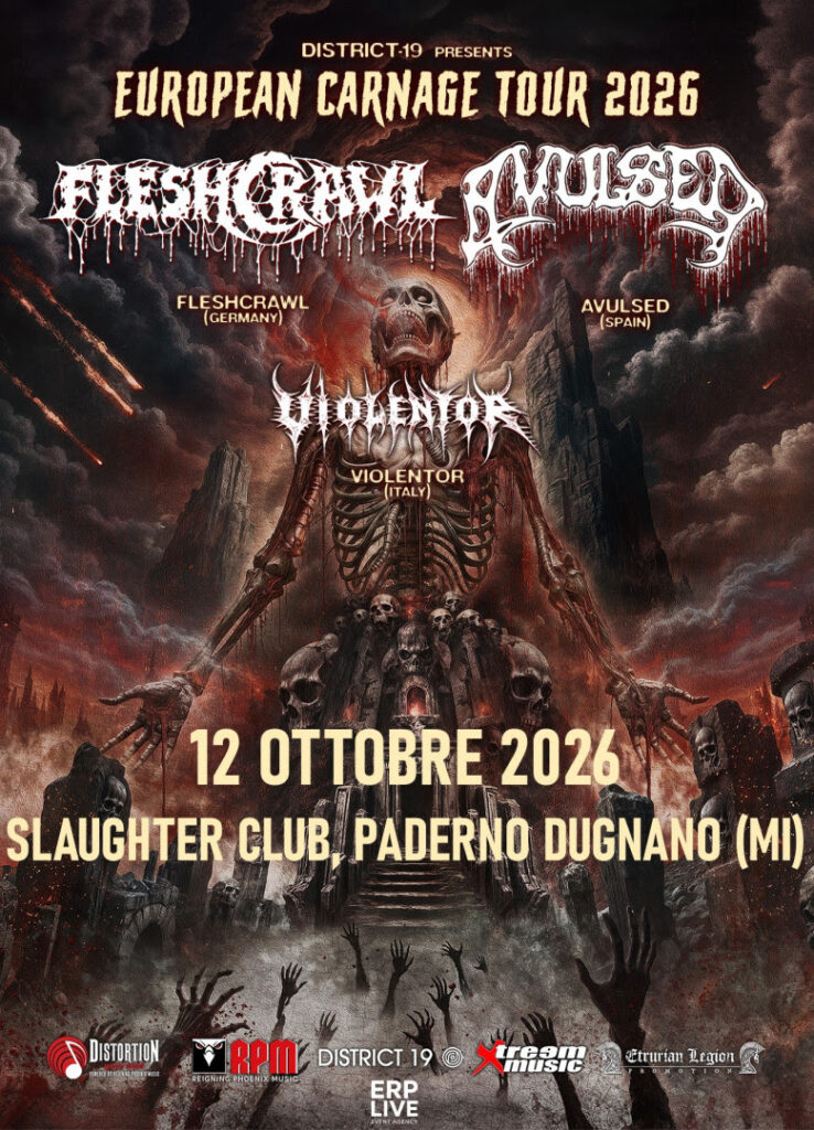 Al servizio del sound death dal lontano ’87, autori di album destinati a segnare la storia del genere divenendo seminali e fonte d’ispirazione per tantissime altre formazioni teutoniche e Avulsed, storica band death metal spagnola. A supportare le band tedesca e spagnola saranno, per la data lombarda, gli italiani Violentor.