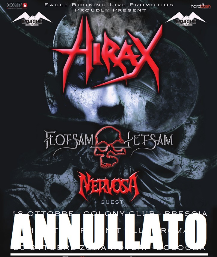È con dispiacere che ci troviamo costretti ad annunciare la cancellazione del tour europeo diHIRAX e FLOTSAM AND JESTAM.