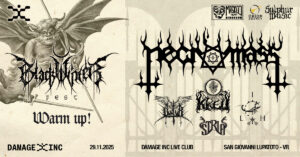 Stefano: siamo pronti e attivi sul fronte live e vorremmo esserlo di più. La nostra prossima esibizione sarà il 29 novembre per il warm-up del Black Winter Fest al Damage Inc. di San Giovanni Lupatoto (VR) in compagnia di Strja, Vultur, Kre’u e Necromass.