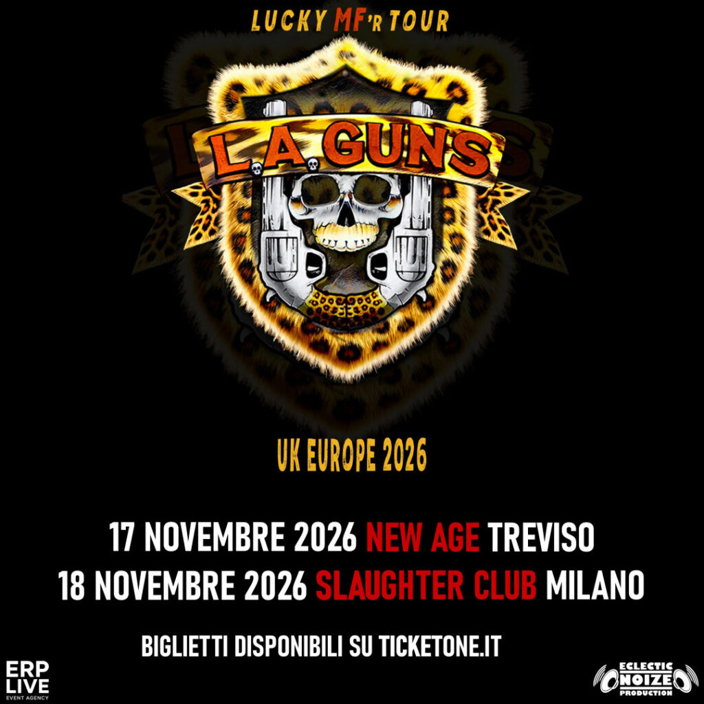 Guidati da Tracii Guns e Phil Lewis, gli L.A. Guns torneranno in Italia per i primi spettacoli dal 2018 a supporto del loro nuovo album “Leopard Skin”. Con quasi 40 anni di carriera, i fan storici della band possono aspettarsi tutti i grandi classici come “Electric Gipsy”, “Rip and Tear” e “Over the Edge”, oltre le indimenticabili ballads come “It’s Over Now” e “The Ballad of Jayne”.