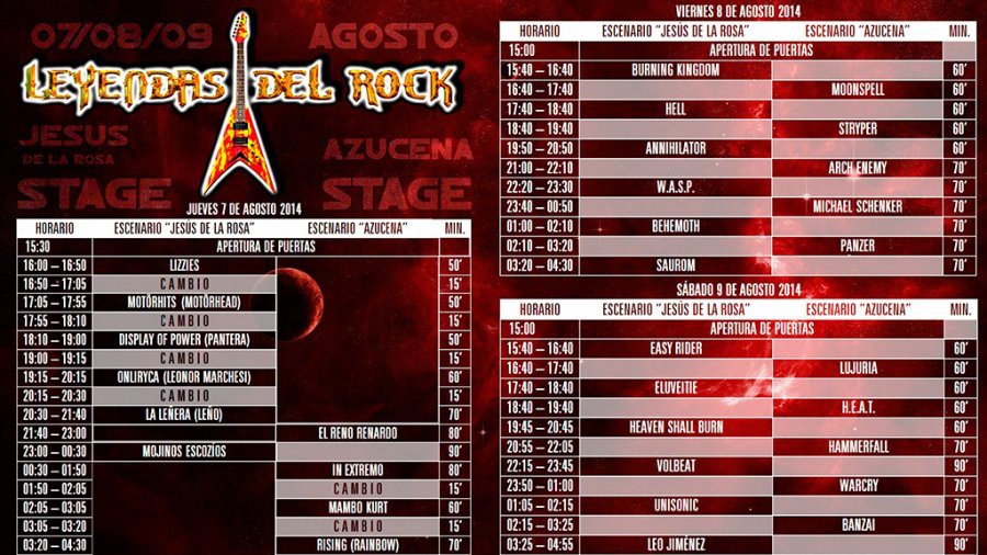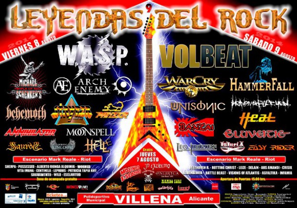 Definiti orari e running order del Festival “LEYENDAS DEL ROCK”che si terrá in Spagna dal 7 al 9 agosto 2014 a Villena (Alicante).
