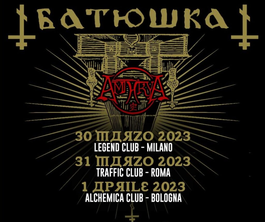 Dopo la trionfale esibizione alla nona edizione del Metalitalia.com Festival, i Батюшка annunciano tre date esclusive a Milano, Roma e Bologna, dal 30 marzo al 1° aprile 2023. Il nome è volutamente scritto in lettere cirilliche come nel logo originale della band presente sulle locandine di questo tour, per non confondere la formazione del cantante Bartłomiej Krysiuk, Batushka, con quella oggi capitanata dal chitarrista e compositore Krzysztof “Derph” Drabikowski, riconosciuto dai fan come il vero artefice del successo ottenuto dal gruppo, grazie all’album di debutto ‘Litourgiya’ e al più che degno successore ‘Панихида’.