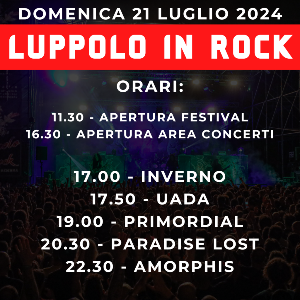 Luppolo in Rock festival annuncia ufficialmente gli orari di apertura del festival ed il running order per le 3 giornate di concerti che si svolgeranno da Venerdì 19 a Domenica 21 Luglio presso il Parco delle Colonie Padane di Cremona.