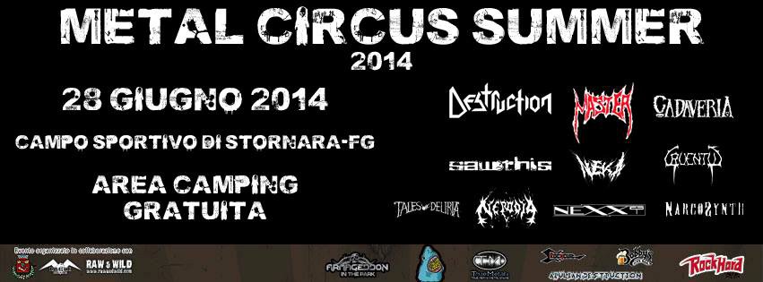 Il METAL CIRCUS SUMMER vedrà la presenza di band di spicco quali DESTRUCTION, MASTER e CADAVERIA oltre alle migliori realtà di Metal Estremo del Centro/Sud Italia cui: SAWTHIS, NEKA, CRUENTUS, TALES OF DELIRIA, NERODIA, NEXXT e NARCOSYNTH.
