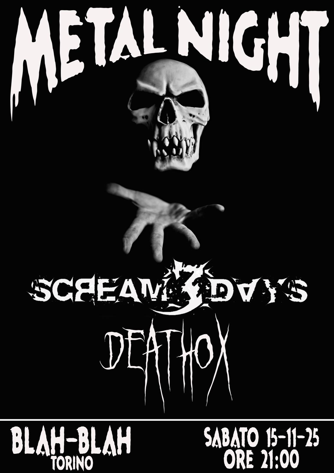 Metal Night: con Scream 3 Days e Deathox al Blah Blah di Torino