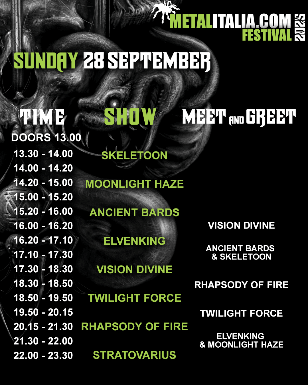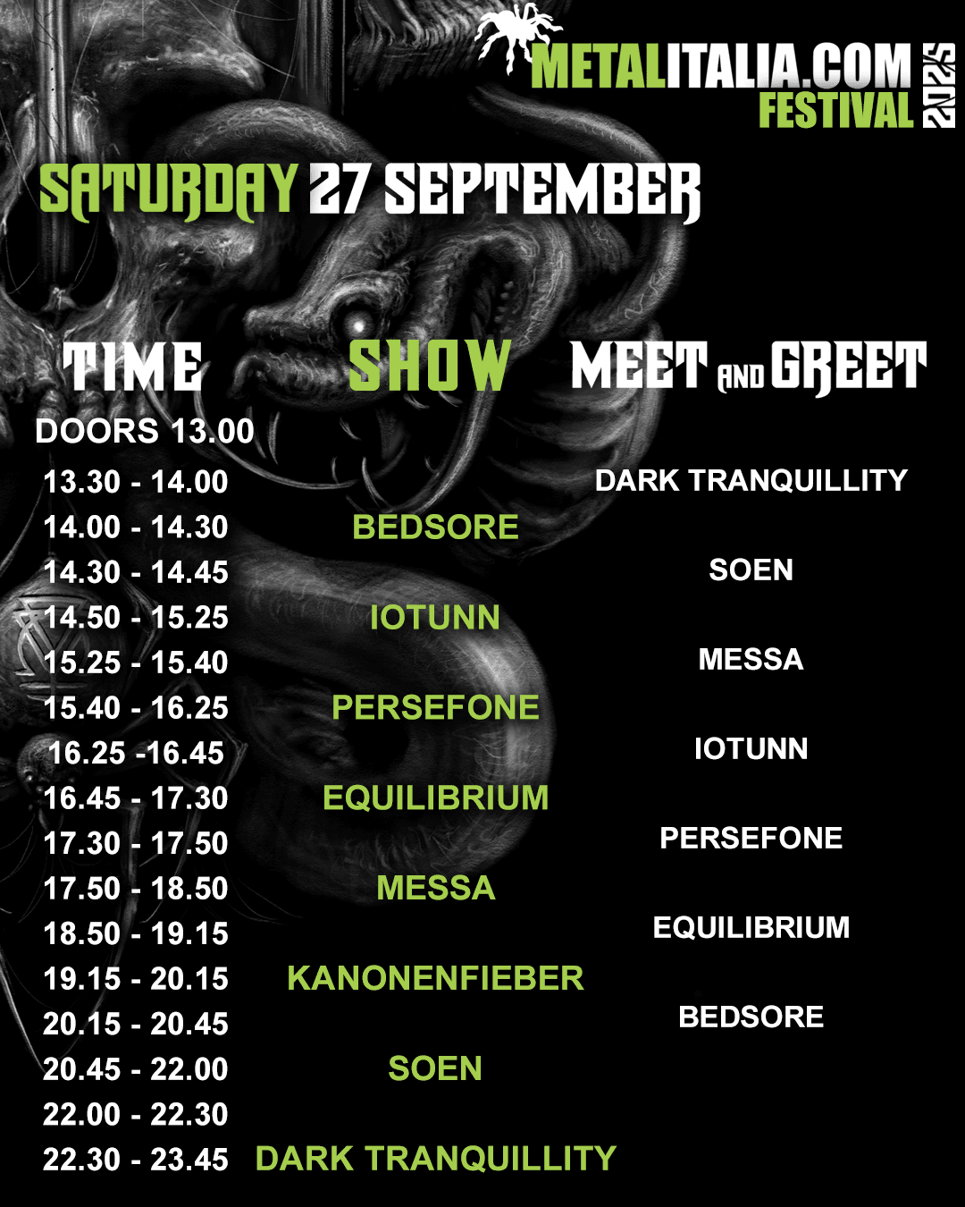 Manca poco al Metalitalia Festival 2025 in programma per il 27 e 28 settembre al Live Club di Trezzo sull’Adda (MI) e oggi siamo lieti di annunciare gli orari dei concerti e dei meet&greet gratuiti e aperti a tutto il pubblico!