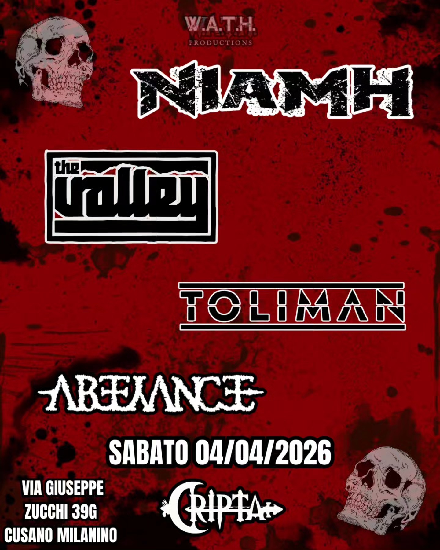 Sabato 4 aprile 2026, il palco de La Cripta ospiterà una serata imperdibile per gli appassionati di musica metal. Headliner dell’evento saranno i NIAMH, pronti a guidare una lineup intensa e ricca di energia che include anche Abeyance, The Valley e Toliman.