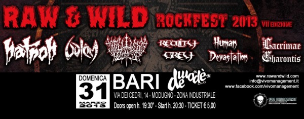 Per sopraggiunti problemi personali i Real Chaos e i Neka (che avrebbero dovuto ospitare nella loro esibizione anche i Necrotorture) non potranno partecipare al Raw & Wild RockFest previsto per il prossimo 31 Marzo al Demodè Club di Modugno, in provincia di Bari.