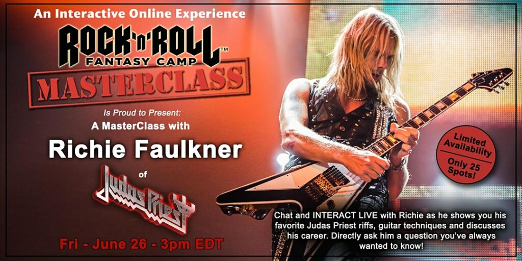 Una Masterclass di chitarra dal vivo, interattiva e online con Richie Faulkner dei Judas Priest, è stata annunciata da Rock ‘N’ Roll Fantasy Camp.