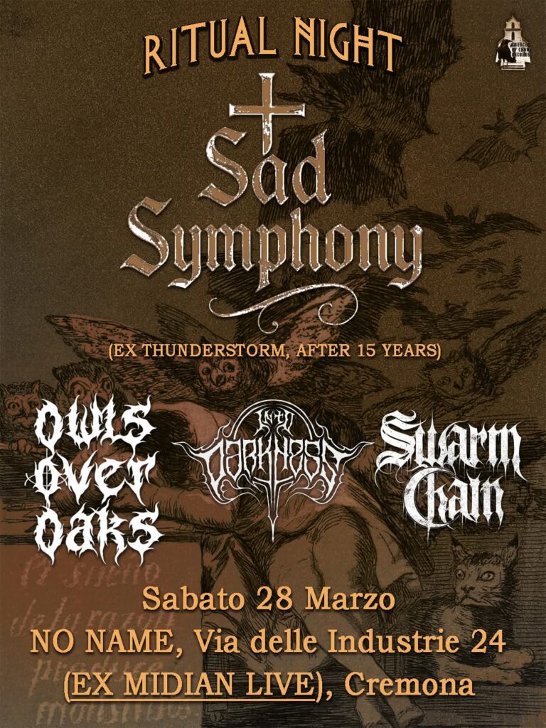 Sabato 28 marzo al No Name (ex Midian) in Via delle Industrie 24 a Cremona si terrà il mini festival Doom Death tutto italiano Ritual Night, che vedrà headliner i Sad Symphony (ex Thunderstorm) storica band doom italiana da poco tornata sui palchi.