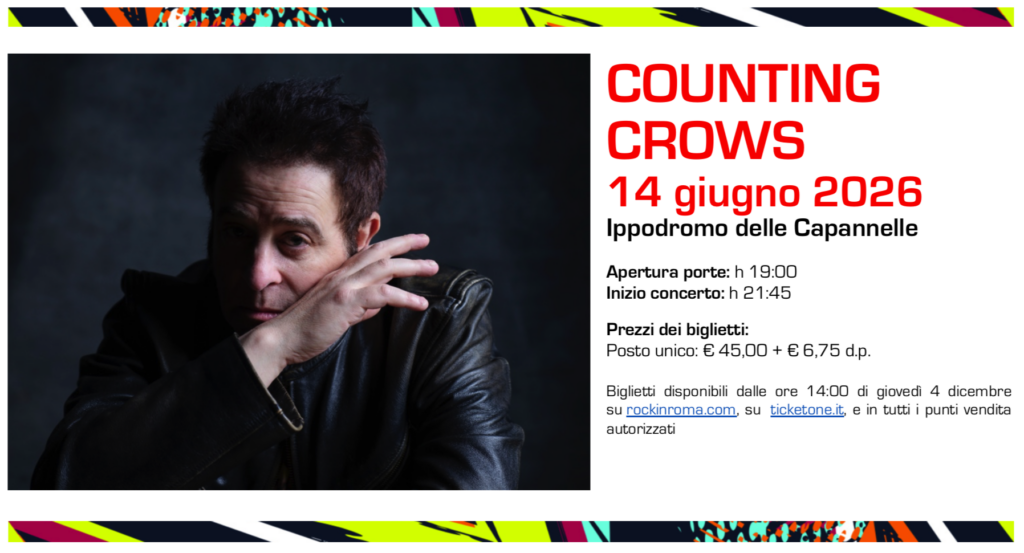 A Rock in Roma si esibiranno i Counting Crows il 14 giugno all’Ippodromo delle Capannelle, dopo quattro anni di assenza a Roma, portando sul palco il loro inconfondibile sound.