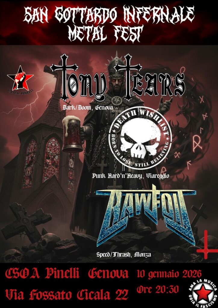 Si terrà il 10 gennaio 2026 il San Gottardo Infernale Metal Fest che vedrà salire sul palco la Speed/Tech Thrash Metal band Rawfoil, la Punk Rock band Death Wishlist e il Dark Metal di Tony Tears.