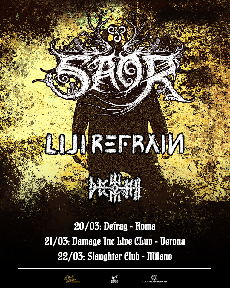 ll tour italiano di Saor, inizialmente previsto per ottobre 2025, verrà recuperato a marzo 2026 per esigenze logistiche ed organizzative, con tre concerti esclusivi. La terza data precedentemente indicata come TBA sarà il 21 marzo al Damage Inc Live Club di Verona. Confermate anche le tappe di Roma e Milano.