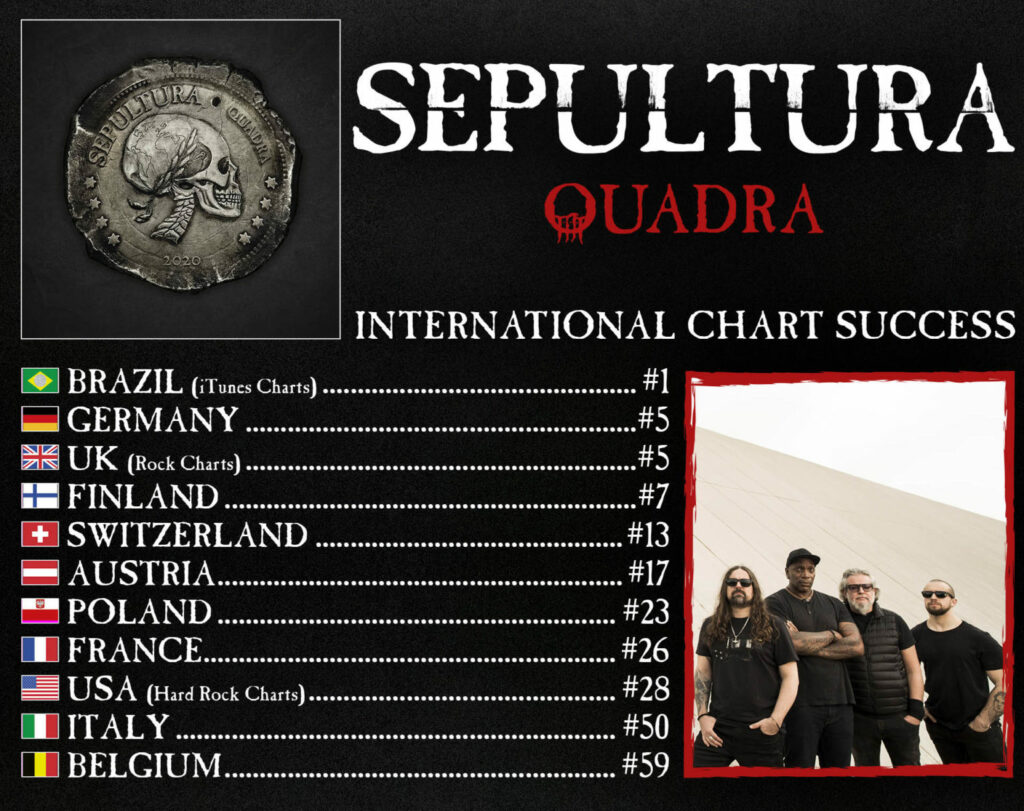 Andreas Kisser dichiara: “Sono davvero felice della risposta incredibile ricevuta per ‘Quadra’. I nostri fan stanno esprimendo i loro sentimenti in un modo molto intenso! Ora abbiamo i primi risultati delle classifiche per l’album e voglio davvero ringraziare tutti per l’amore e il supporto, questo è un inizio fantastico per l’intero ciclo di ‘Quadra’. Ci vediamo on the road!”.