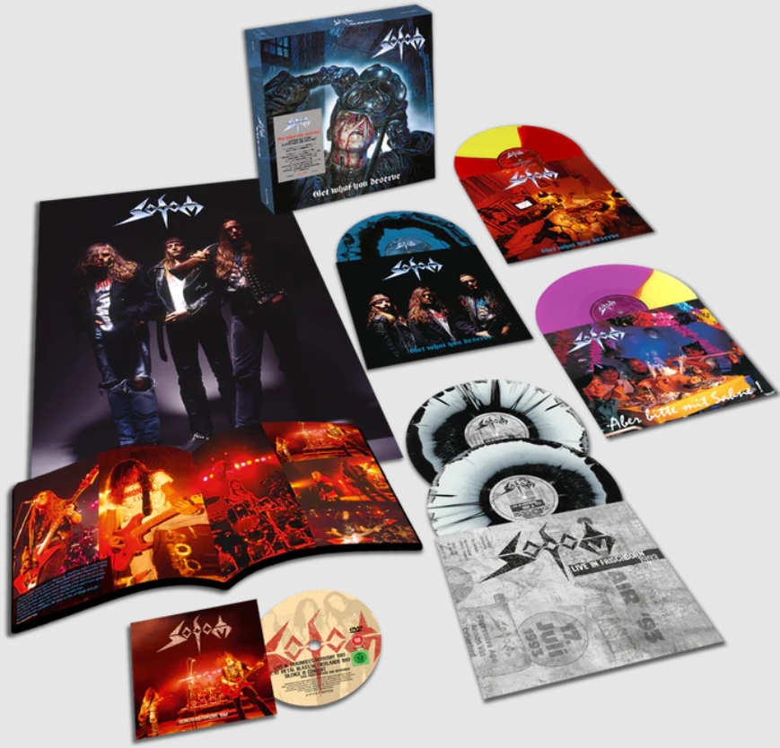 Il 27 febbraio 2026, BMG pubblicherà “Get What You Deserve”, il sesto album in studio dei veterani del Thrash Metal tedesco Sodom, in un ampio cofanetto, rimasterizzato e mixato dall’ex chitarrista dei Sodom Andy Brings che ha suonato nella registrazione originale, che include l’EP “Aber Bitte Mit Sahne” rimasterizzato e remixato, più il primo concerto con il batterista Guido “Atomic Steif” Richter come doppio LP bonus e un DVD con ulteriori spettacoli dal vivo. Oltre alla copertina originale della camera d’albergo, il cofanetto include anche la versione censurata con la foto della band e l’artwork originariamente previsto con un dipinto “Knarrenheinz” dell’artista di culto Andreas Marschall.