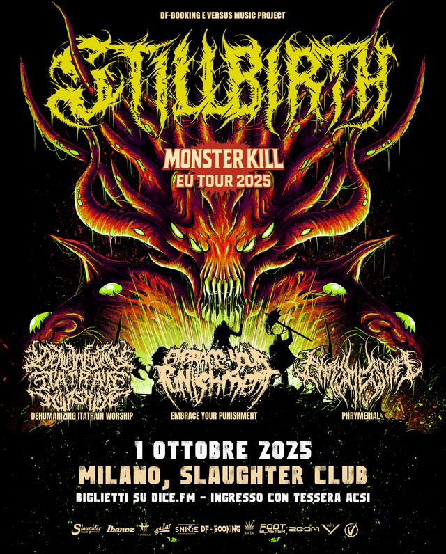 VERSUS MUSIC PROJECT è felice di mettere di nuovo Milano sulla mappa di brutal, slam e deathcore europei con una data del Monster Kill EU tour che presenta in cima alla propria line up il “party slam” dei tedeschi Stillbirth e la proposta “otaku Brutal death metal” dei cinesi Dehumanizing Itatrain Worship: