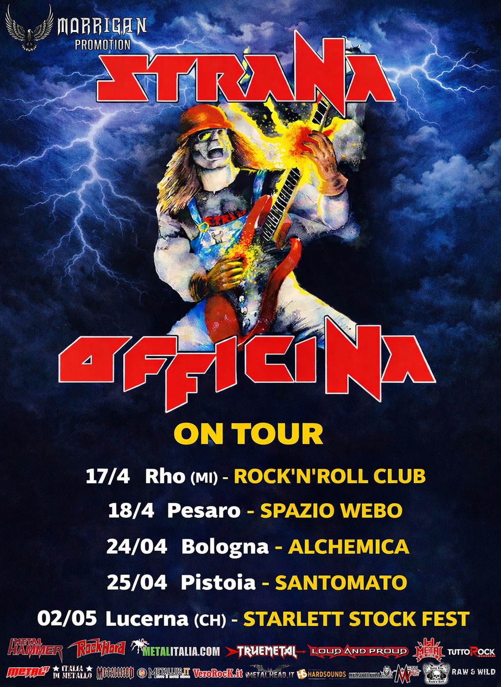 Nuovo tour primaverile per gli inossidabili STRANA OFFICINA, un nome che da cinquant’anni è sinonimo di metallo italiano!!! Nati a metà degli anni 70 per volere dei fratelli Cappanera, la band è da allora la beniamina di ogni amante del hard’n’heavy made in Italy.