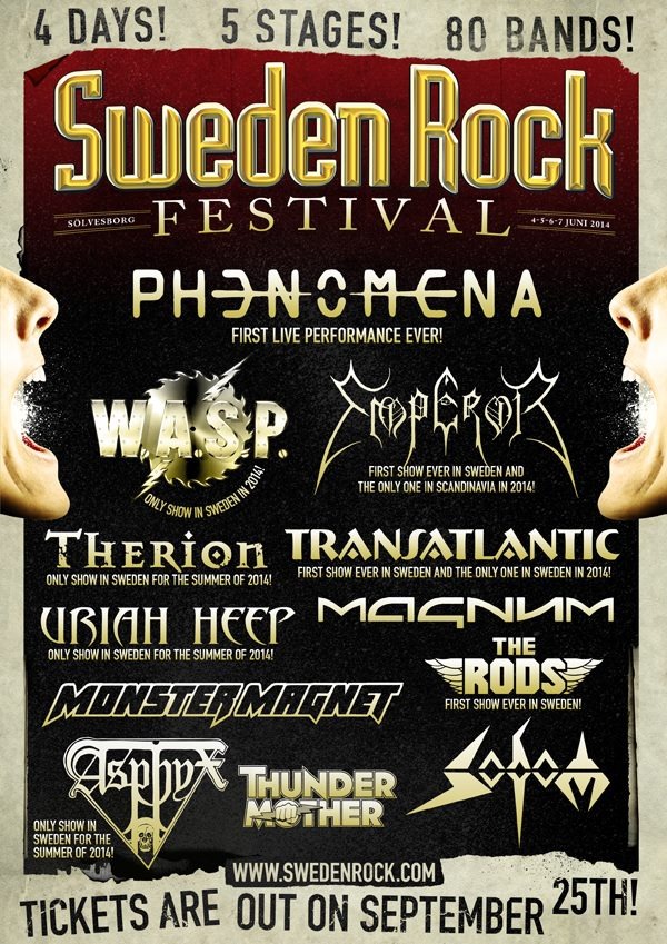 Lo SWEDEN ROCK FESTIVAL ha annunciato, attraverso la propria pagina Facebook, i primi nomi confermati per la prossima edizione.