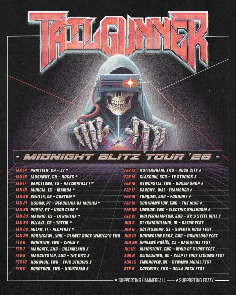 La band britannica Heavy Metal Tailgunner, dopo aver annunciato l’uscita del suo nuovo album “Midnight Blitz”, prodotto dalla leggenda K.K. Downing e in uscita il 6 febbraio 2026 tramiteNapalm Records, ha annunciato le date del tour Midnight Blitz ’26.