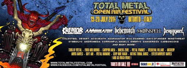 Dopo le band già confermate, tra cui mostri sacri come ANNIHILATORMOONSPELL eDEATH ANGEL, e soprattutto dopo la sorprendente rivelazione di un bassissimo prezzo del biglietto di ingresso (solo 40 euro per due giorni!!!), saranno certamente in tantissimi a saltare dalla sedia con l’annuncio delle due (non una… due!!!) superband che completano la parte alta del bill del TOTAL METAL OPEN AIR FESTIVAL che chiama a rapporto nientemeno che i leggendari thrashers tedeschi KREATOR e una delle death/black metal band più osannate del momento, i BEHEMOTH!