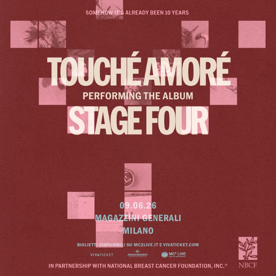 Dopo il pienone registrato al Legend Club di Milano a inizio anno, i Touché Amoré torneranno in Italia il prossimo anno per un unico concerto interno al loro tour “Stage Four 10 Year Anniversary” annunciato oggi.