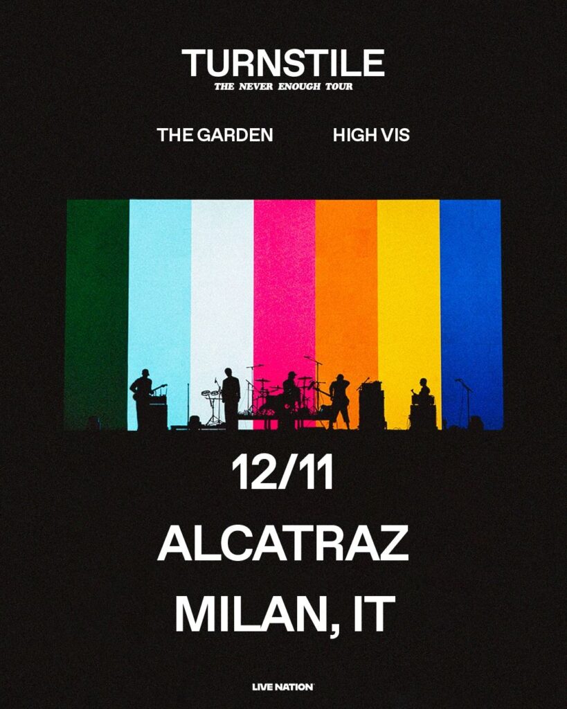 I TURNSTILE hanno pubblicato il loro attesissimo nuovo album “Never Enough“, uscito il 6 giugno. “Never Enough” è un’evoluzione inquieta ed esaltante del suono che sfida i generi dei TURNSTILE. Un viaggio trasformativo, impavido e vivo, di una delle band più lungimiranti e influenti della loro generazione. Inoltre, il film che ha accompagnato l’album, “Turnstile: Never Enough” è uscito nelle sale cinematografiche. Si tratta del primo nuovo album dei TURNSTILE dopo “Glow On” del 2021, che è valso alla band quattro nomination ai Grammy.