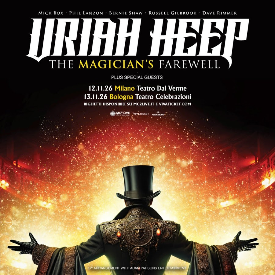 Tornano in Italia gli Uriah Heep. La leggendaria formazione londinese annuncia oggi le date del nuovo tour “The Magician’s Farewell”, che vedranno il gruppo guidato da Mick Box esibirsi anche nel nostro Paese per due concerti che si terranno il 12 novembre al Teatro Dal Verme di Milano e il 13 novembre al Teatro Celebrazioni di Bologna.