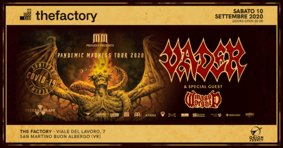 Sa Produzioni, Orion Agency e The Factory sono orgogliosi di presentare giovedì 10 Settembre l’UNICA DATA ITALIANA del “Pandemic Madness Tour” dei VADER: band internazionale nonchè pilastro storico del genere Death Metal. Per l’occasione, presenteranno il loro ultimo disco “Solitude in Madness” uscito lo scorso Maggio 2020.