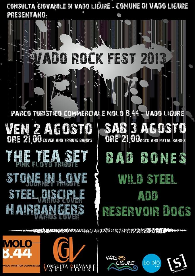 Importante show live per Wild Steel. Il noto artista ligure, sarà di scena il prossimo 3 agosto al Vado Rock Fest 2013. Il bill prevede la presenza anche dei Reservoir Dogs, degli ADD – Avvocati del Diavolo,  nonché dei noti Bad Bones che saranno anche gli headlinaer della serata. Il festival si dividerà in due serate ed avrà inizio il prossimo 2 di agosto.