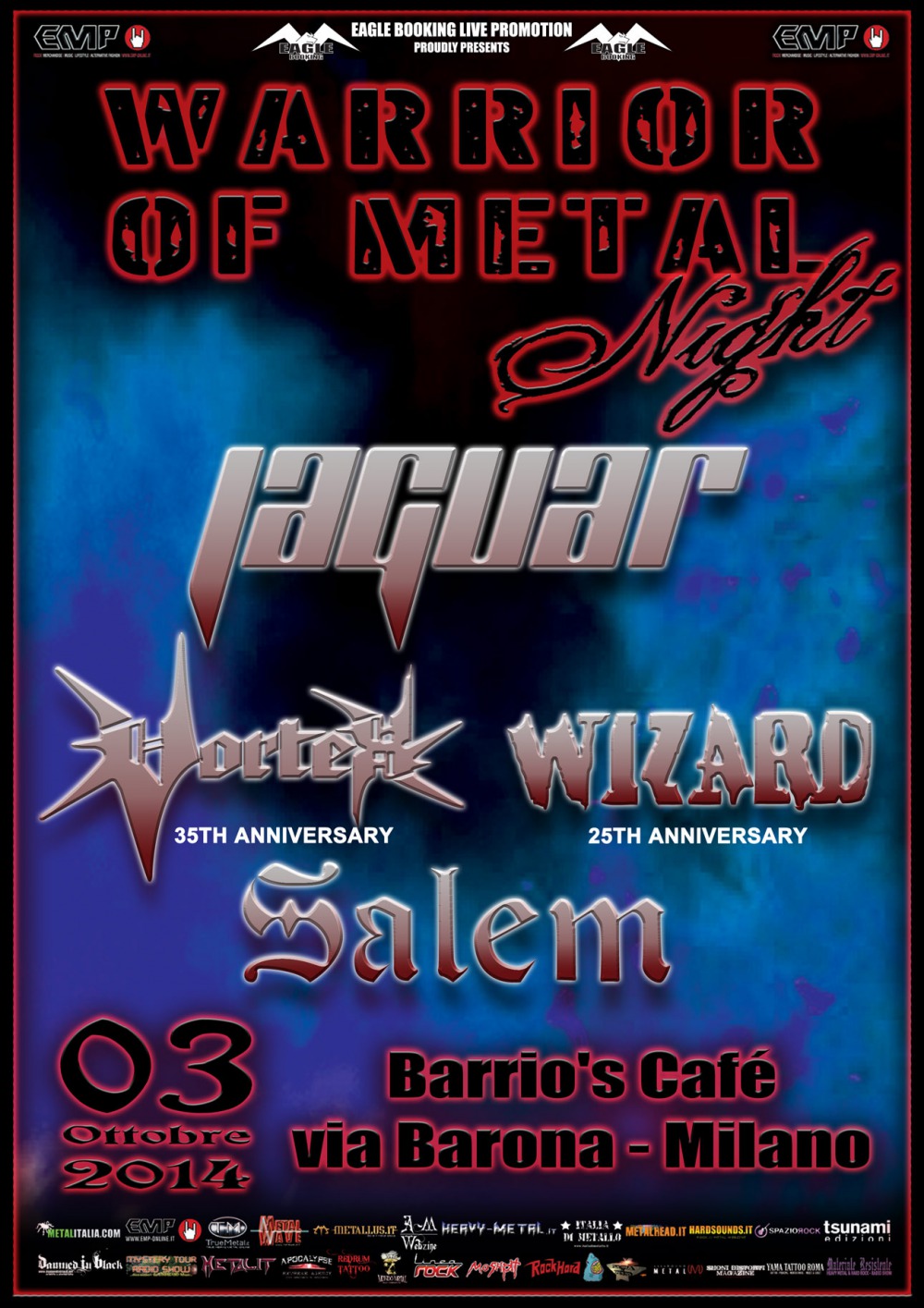 Warriors Of Metal Night: a Milano con Jaguar,Vortex,Wizard e Salem