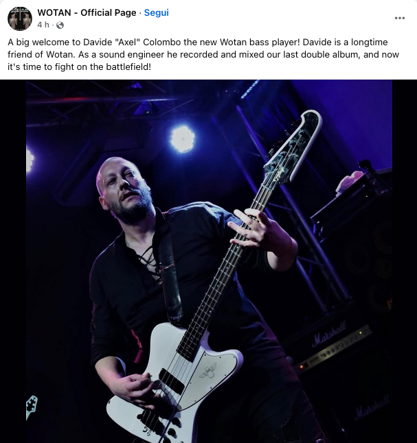 Dopo l’annuncio della separazione dallo storico bassista Salvatore Oliveri, i Wotan hanno presentato il nuovo elemento Davide “Axel” Colombo con questo post sulla pagina ufficiale di Facebook: