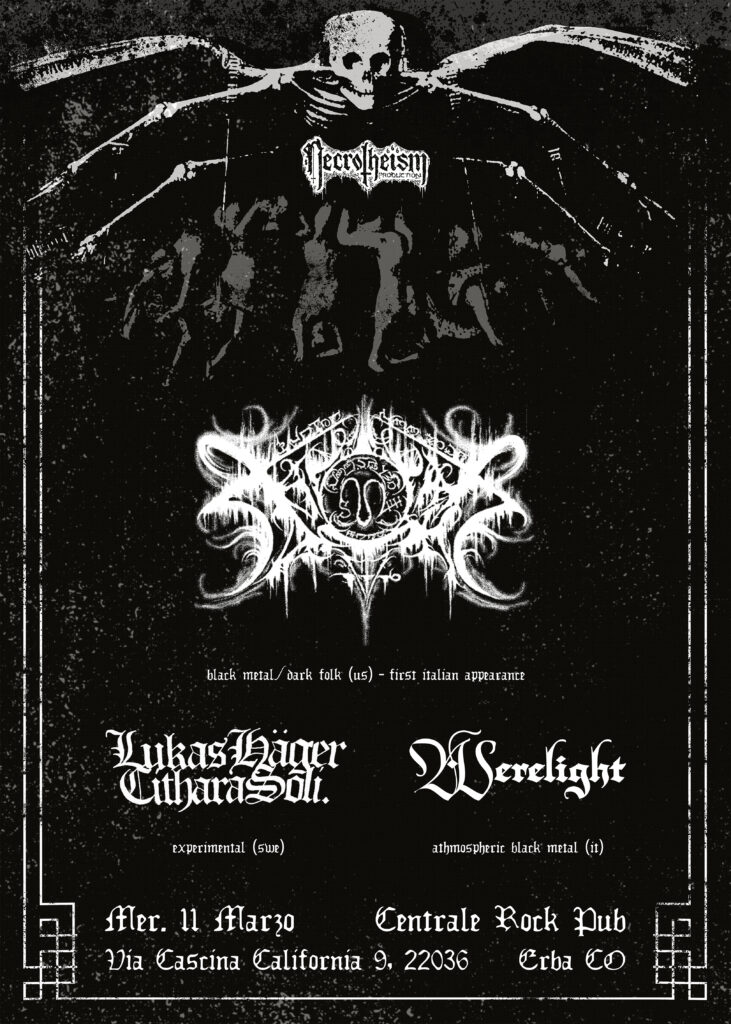 Necrotheism Prod. è orgogliosa di annunciare la prima e unica apparizione italiana di sempre di Xasthur, istituzione della musica depressiva dalla California. La creatura di Scott Conner (anche in Sunn O))), per un periodo), attiva dal 1995, negli ultimi trent’anni ha lasciato un’impronta indelebile sul black metal statunitense, spingendosi nel tempo anche verso traiettorie più acustiche e folk/neo-folk.