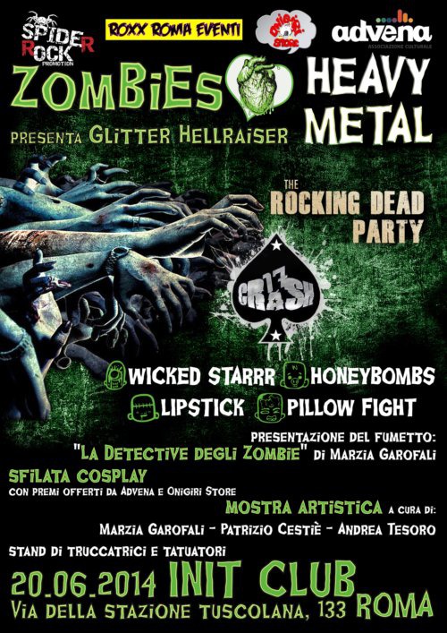 Novità sul fronte Zombies Love Heavy Metal, un evento unico dove per la prima volta il mondo dell’Hard Rock e dell’Hair Metal incontra quello dei Manga horror, organizzato da Spider Rock Promotion, Roxx Roma, Advena Ass. Culturale e Onigiri Store. L’evento si terrà venerdi 20 giugno 2014 all’Init di Roma.