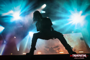 L’atmosfera inizia a scaldarsi vertiginosamente. Dopo il cambio palco saranno i Whitechapel a entrare in scena e il pubblico non sta più nella pelle. La formazione di Knoxville è un pezzo da novanta della scena deathcore mondiale e molti dei presenti sono in totale trepidazione per l’imminente show. Intanto i lavori proseguono: viene issato il backdrop della compagine americana e cambiata la batteria. Alle 20:00 le luci si spengono, il Geox viene avvolto dall’oscurità e la folla esplode in un boato intenso. Si capisce subito che ci stiamo addentrando in uno dei momenti clou della serata. I Whitechapel entrano in scena e quando Phil Bozeman porta il microfono alla bocca e urla «I bear the number» l’intero Geox risponde «666». L’adrenalina è completamente fuori controllo e sul palco i sei americani iniziano l’assalto frontale. La precisione è chirurgica e il trittico posto in apertura – ‘Prisoner 666’, ‘Hymns in Dissonance’ e ‘A Visceral Retch’ – è un’autentica rasoiata. Il pubblico è presentissimo e accompagna la prova con ripetuti cori ritmati, atti a scandire le parti cadenzate. Ogni qualvolta Bozeman lo chieda, platea e gradinate rispondono con un tripudio di corna alzate sopra la testa. Le luci regalano interessanti coreografie che valorizzano la prestazione dei sei americani. I suoni risultano ben bilanciati, anche se all’inizio le chitarre meriterebbero un po’ di spessore in più. Fronte palco il crowd surfing è a ciclo continuo, con l’effetto di un ripetuto flusso di persone a mezz’aria, mettendo a dura prova la security. Pogo e circle pit si verificano a macchia, ma sono solo dei momenti fugaci. Un dettaglio che sorprende, visto il massacro sonoro messo in atto dai sei ragazzacci. Dopo ‘Bedlam’ il teatro piomba nuovamente nell’oscurità. I presenti rumoreggiano sempre più forte. In sottofondo parte l’interludio ‘Ex Inferi’ e Bozeman irrompe in scena mostrando e indossando la maschera presente nella copertina di “Hymns in Dissonance”. La platea replica con un boato fragoroso. Il cantante posa la maschera e dà il via alla violentissima ‘Hate Cult Ritual’. Le chitarre, intanto, si sono fatte più muscolose e rendono maggiore giustizia al sound dei Whitechapel. C’è da dire che la prestazione del sestetto, seppur maniacale e violentissima, pecca un po’ d’intensità. La performance appare sì apprezzabile e di valore, ma le manca quel quid per fare davvero la differenza. Ci stiamo intanto avvicinando alle battute conclusive dello show. Bozeman invita i fan a omaggiare Humanity’s Last Breath e Shadow of Intent, chiedendo poi un applauso per i Lorna Shore. Esorta infine il pubblico ad autocelebrarsi, dato che una platea così rumorosa è difficile da trovare. Dopo una scaletta interamente incentrata sul platter del 2025, i Whitechapel regalano un po’ di gemme al vetriolo provenienti dal passato, proponendo un trittico pescato dal primo disco. Da questo momento iniziano a muoversi con maggior enfasi sul palco, in particolare Ben Savage, che a più riprese sale sulla pedana rialzata, cercando il contatto con i fan. Lo show in questo modo diventa più caldo e coinvolgente, alzando l’asticella proprio nel finale. La prova dei Whitechapel viene chiusa con la pesantissima ‘This Is Exile’, per la gioia dei presenti. Nel break strumentale la platea si muove all’unisono, a tempo, regalando un momento semplicemente magico. Siamo arrivati alla fine, non c’è più tempo. Sono le 20:45 quando i Whitechapel lasciano il palco, acclamati da un pubblico estasiato.